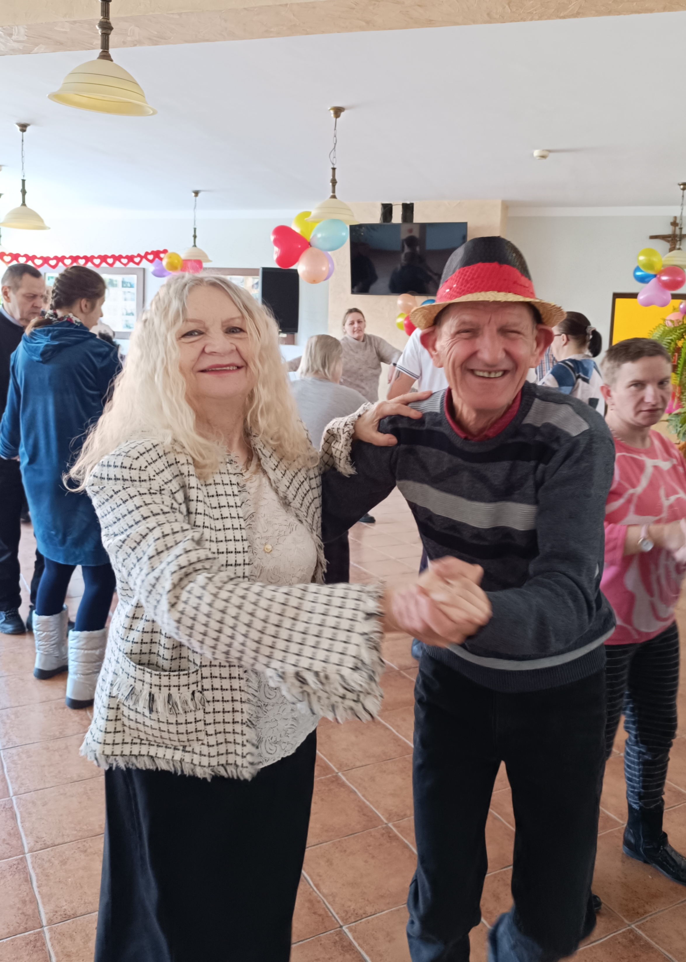 Posted 17 lutego 2025 By Malwina NawrockaDnia 14 lutego w Naszym Domu zorganizowaliśmy zabawę walentynkowo- karnawałową. Wiadomym jest, że zabawy taneczne dla osób z zaburzeniami psychicznymi mają wiele korzyści, zarówno pod względem zdrowia psychicznego, jak i fizycznego. Taniec wpływa pozytywnie na poziom endorfin , co pomaga w walce ze stresem, lękiem i depresją. To także świetna okazja do nawiązywania relacji i budowania więzi w przyjaznej atmosferze. Taniec pozwala wyrazić siebie, co może zwiększyć pewność siebie i samoakceptację. Ruch pomaga w regulacji napięcia mięśniowego i poprawia ogólną kondycję, co jest ważne w terapii niektórych zaburzeń. Muzykoterapia i terapia tańcem (choreoterapia) są stosowane jako uzupełnienie leczenia wielu schorzeń, np. depresji, zaburzeń lękowych czy schizofrenii. Tym bardziej cieszymy się, że w dniu kiedy świętować można dzień przyjaźni odwiedzili nas Nasi przyjaciele z : DPS Piotrków Kujawski, DPS Tonowo, DPS Ludzisko, DPS Tarnówko oraz Uczestnicy WTZ w Nowej Wsi. Impreza jak zwykle była przednia i dostarczyła dużo radości. Wszyscy dobrze się bawili, atmosfera była wspaniała, a wydarzenie pozostawiło pozytywne wspomnienia na długo. O oprawę muzyczną zadbali Panowie Łukasz Sochowski i Rafał Nawrocki. Serdecznie dziękujemy przybyłym gościom za wspólną zabawę i otrzymane prezenty. Fotorelacja…